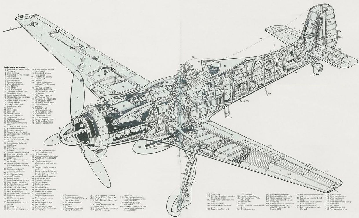 Development continued with the D-10 through-15 versions, all of which were to be multi-role interceptor/ground-attack fighters with a wide variety of engines-the Daimler-Benz DB-603A and EB, the Junker Jumo 213EB and F with and without water methanol injection. Further development followed as the Ta 152, which is reported separately. Between 650 and 700 Fw 190 D's were completed when production ceased in 1945. Focke-Wulf's Marienburg plant, although apparently devastated by bombing, itself produced eight Fw 190 D's a day in December 1944. Figures vary, but approximately 13,250 fighters and 6,250 fighter-bomber versions were produced. This included 11,411 accepted by the Luftwaffe in 1944 alone-an increase of 375% over the previous year-and some 2,700 added in the final months of the war, even though about 30% of Fw 190 factories had been overrun by Soviet forces by February 1945.